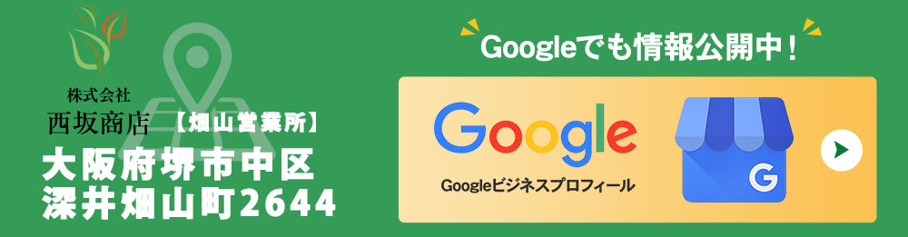 株式会社西坂商店は大阪府堺市の畑山営業所・毛穴営業所にて、事業を行っております。